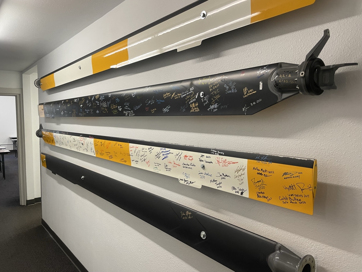 Unterschrift auf dem Rotorenblatt nach dem Lizenzerwerb