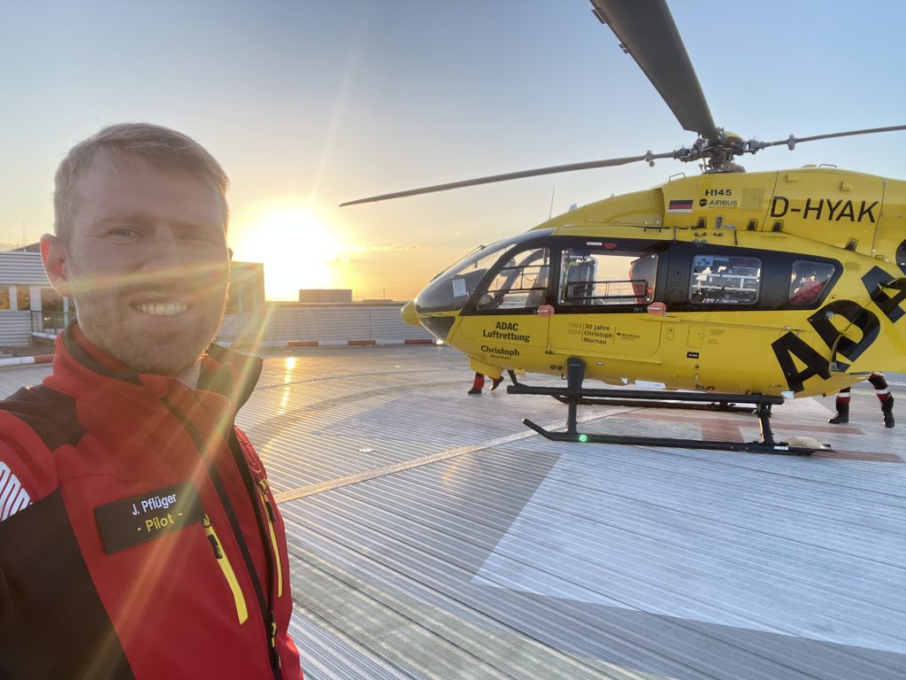 Ich freue mich, dass ich durch die Rückkehr im April, in den schönen deutschen Frühling und Sommer übergehen konnte – so hab ich die texanische Sonne nicht ganz so stark vermisst. Die letzten Monate habe ich jetzt damit zugebracht beim ADAC einzusteigen. Fliegerisch ist bisher noch nicht so viel passiert. Ich durfte ein paar Mal mitfliegen und im Simulator auch mal selbst ran. Ansonsten sitze ich am Schreibtisch und bearbeite im Rahmen meiner Referententätigkeit Themen wie “Kollisionsvermeidung mit Drohnen”. In Summe macht mir die Arbeit Spaß, vor allem weil ich wieder das Glück habe sehr nette Kollegen um mich rum zu haben. Jetzt in zwei Wochen geht es dann aber auch endlich mit dem sogenannten Type Rating, also der Umschulung auf die ADAC Hubschrauber, los. Über zwei Monate werde ich dann viel Theorieunterricht haben, lerne Multi Crew (also zu zweit) zu fliegen, und verbringe viel Zeit im Simulator und in der H145. Ab Dezember werde ich dann in den Rettungsbetrieb einsteigen und über die nächsten paar Jahre mit erfahrenen Kollegen fliegen, bevor ich dann irgendwann zum Kommandanten ernannt werde, und alleine fliegen darf.